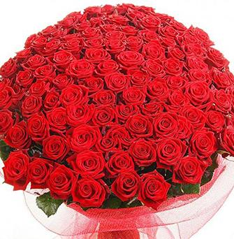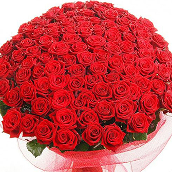 Состав: роза красная 101, упаковка сетка 1, лента шелковая 1